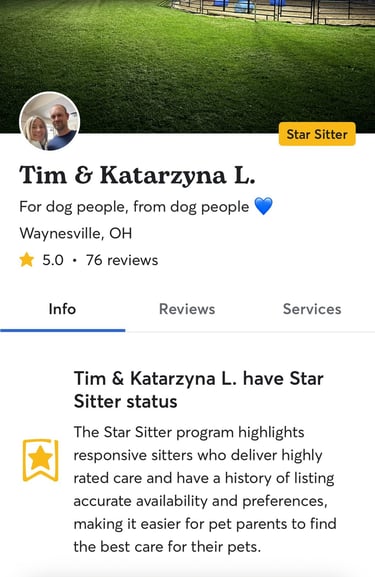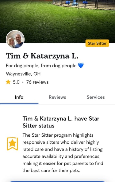 75+ Five-star reviews on Rover for dog boarding!
